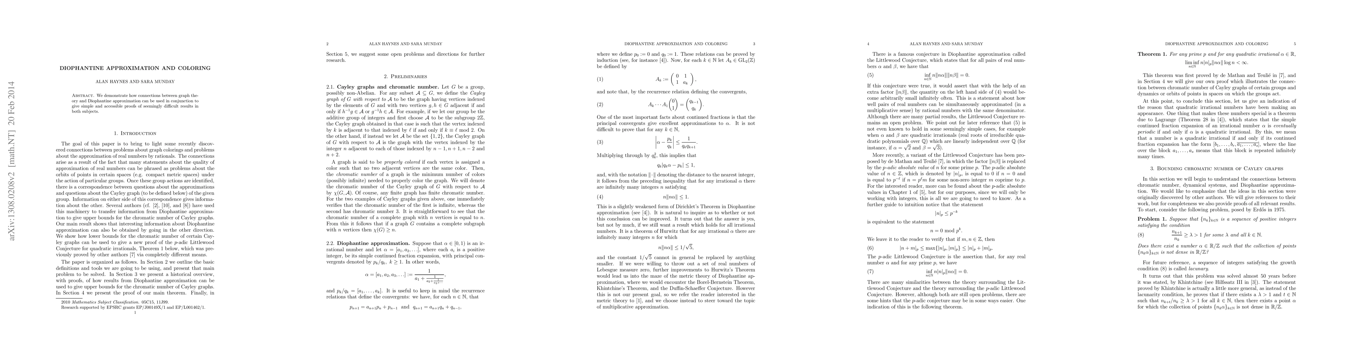 Summary: This paper explores the interplay between graph theory and Diophantine approximation, providing straightforward proofs of complex results in both fields through their combined application. The study highlights the utility of graph-theoretic methods in simplifying Diophantine problems.