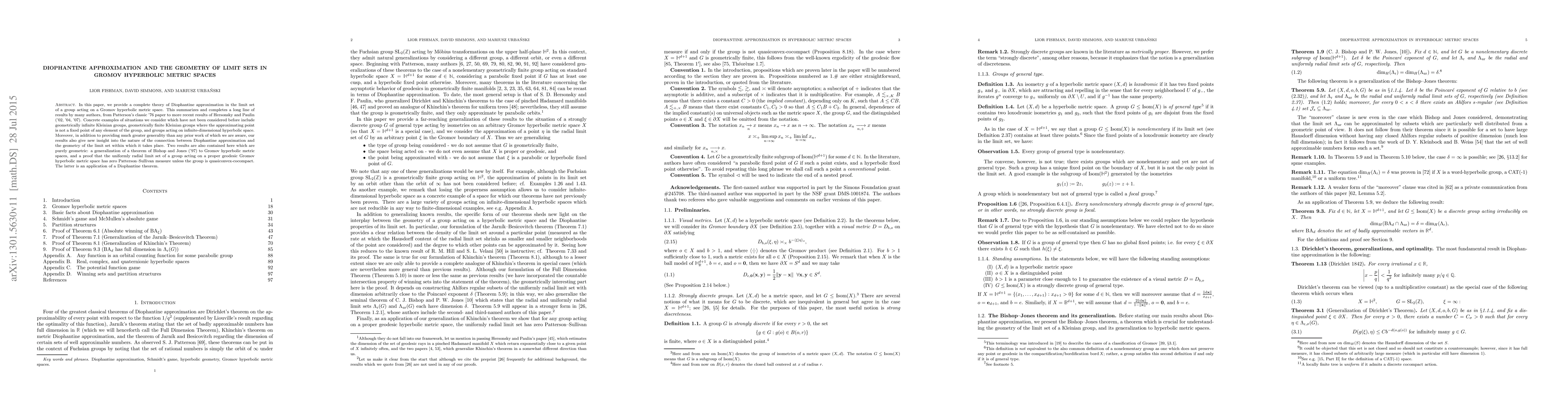 This paper develops a comprehensive theory of Diophantine approximation in the limit set of groups acting on Gromov hyperbolic spaces, extending prior work and introducing novel insights into the geometric connections. It also proves new geometric results, including a generalization of a theorem by Bishop and Jones and a characterization of the uniformly radial limit set's measure.