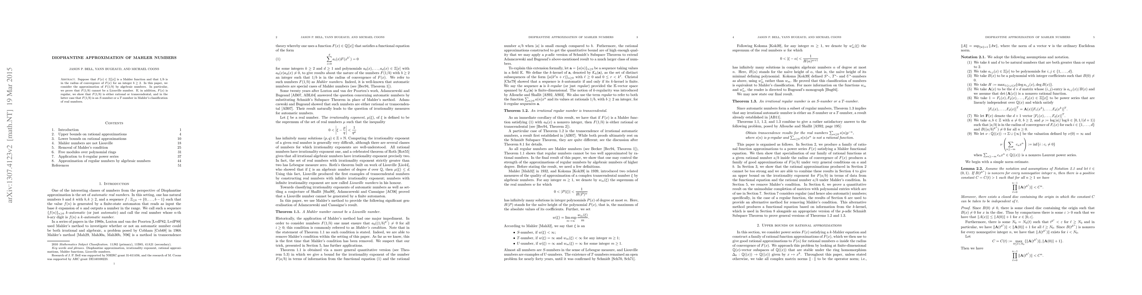 The paper employs techniques from Diophantine approximation, specifically analyzing Mahler functions and their approximations by algebraic numbers, utilizing properties from Mahler's work and extending results from previous studies.