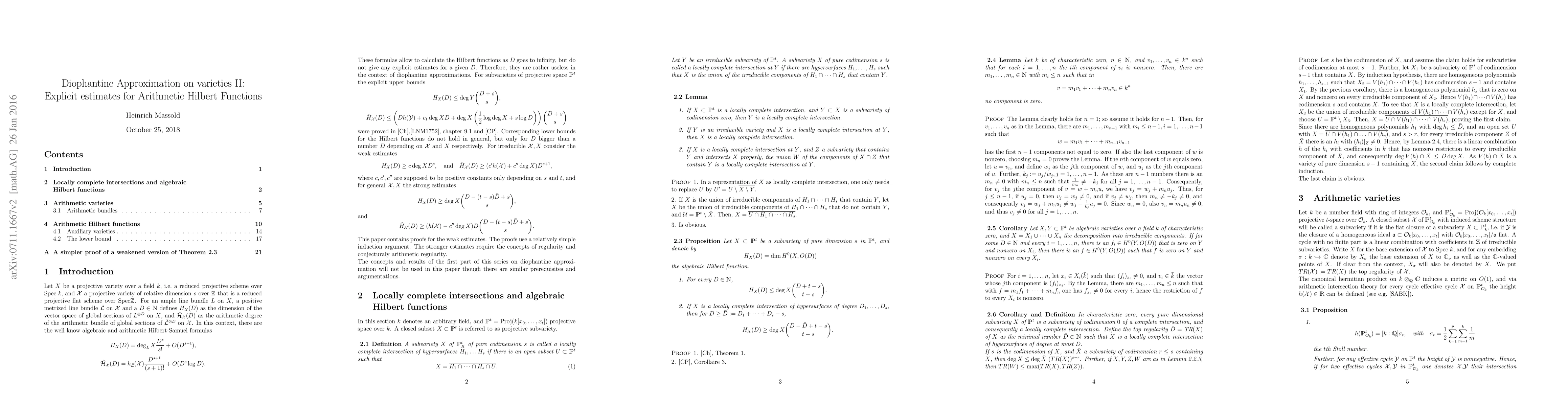 This paper provides explicit estimates for arithmetic Hilbert Functions of closed subvarieties in projective space, addressing the ineffectiveness of the usual arithmetic Hilbert-Samuel formula in the context of Diophantine Approximation.