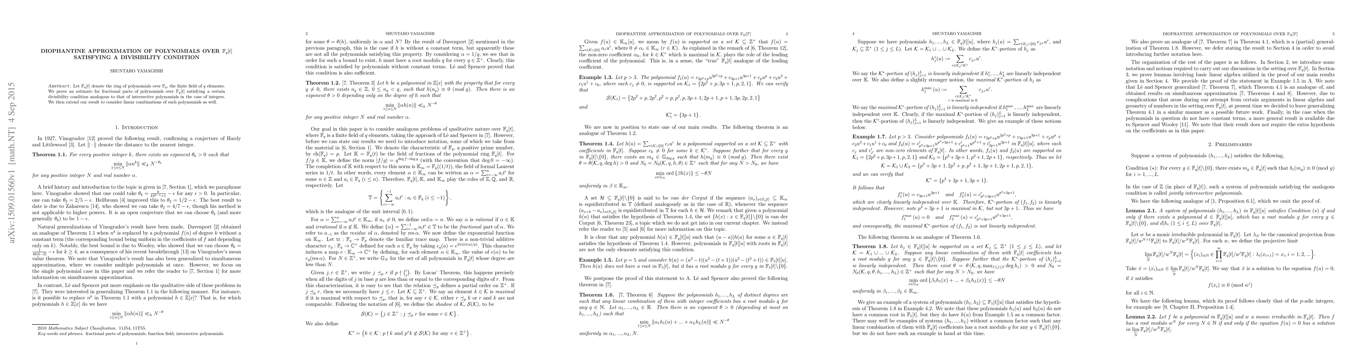 This paper provides an estimate for the fractional parts of polynomials over $\mathbb{F}_q[t]$ that meet a specific divisibility condition, analogous to intersective polynomials in integer cases. The authors also extend their findings to linear combinations of these polynomials.
