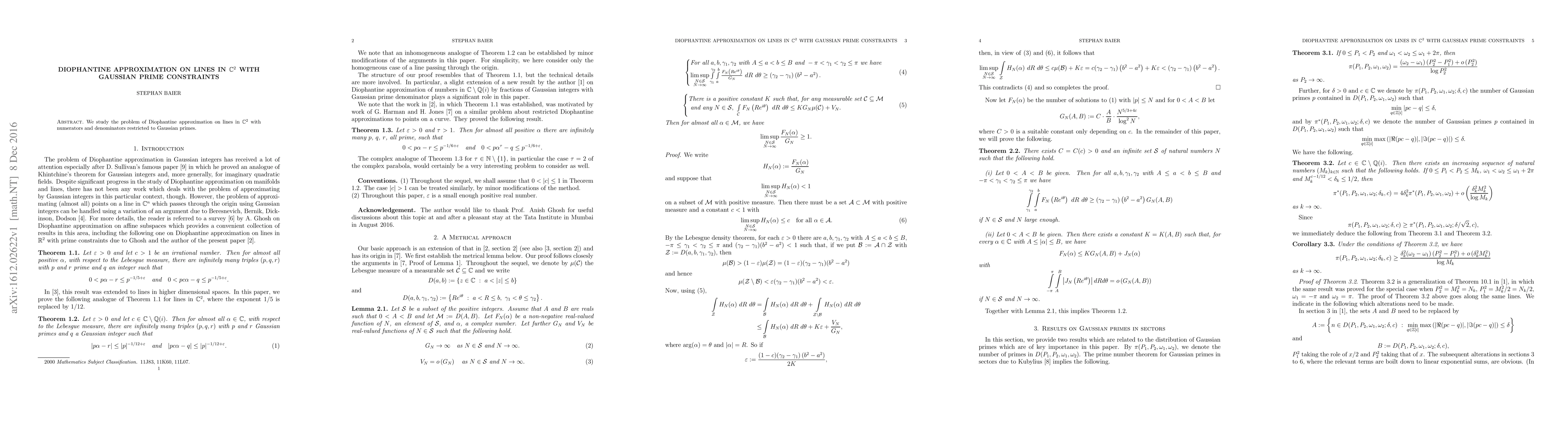 Summary: This paper investigates the Diophantine approximation problem on lines in the complex plane $\mathbb{C}^2$, where both the numerator and denominator of the approximations are constrained to be Gaussian primes. The study aims to understand the behavior and properties of such approximations.