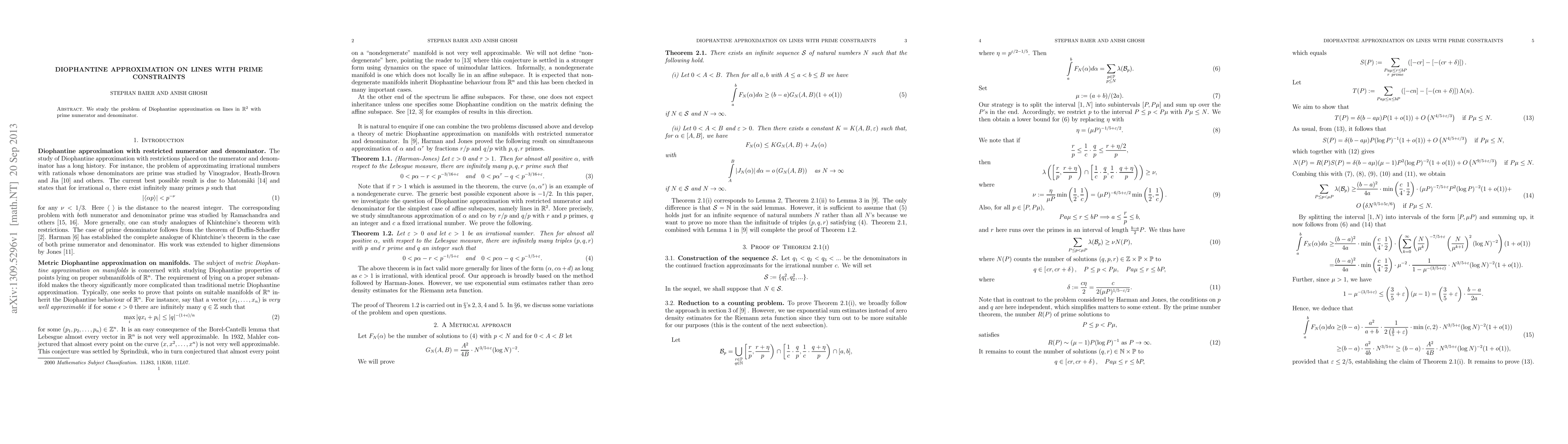 Summary: This paper investigates the Diophantine approximation problem on lines in the plane, focusing on the case where the line's slope is expressed with prime numerator and denominator. The study aims to understand the approximation properties under these specific prime constraints.