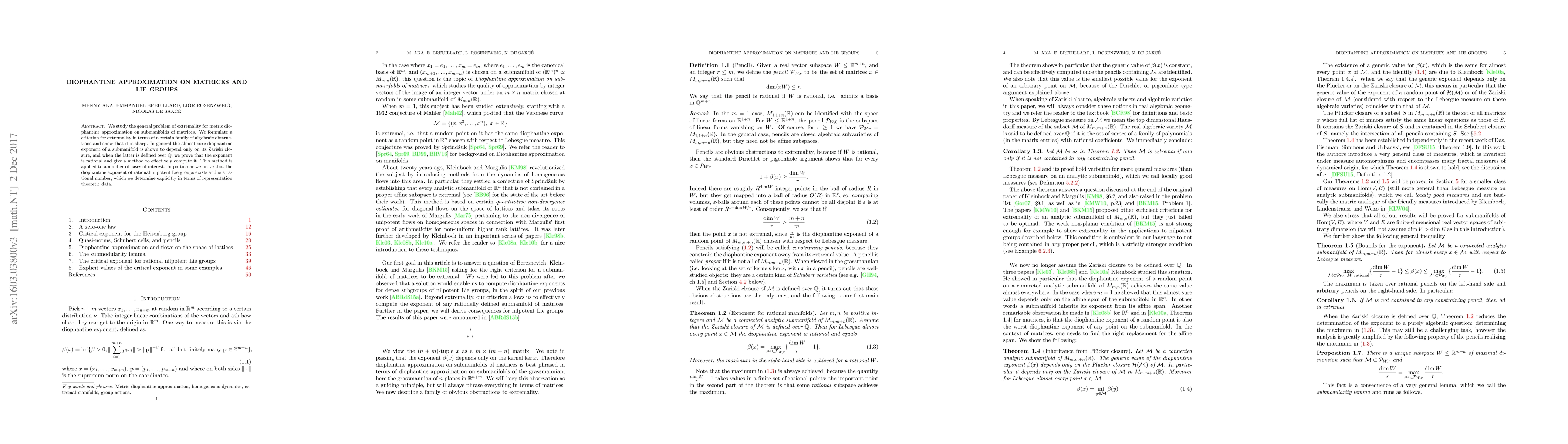 This paper investigates the extremality of metric Diophantine approximation on matrix submanifolds, establishing criteria based on algebraic obstructions. It demonstrates that the diophantine exponent of a submanifold depends on its Zariski closure, and when defined over the rationals, the exponent is rational and computable, with applications to determining the diophantine exponent of random subgroups in nilpotent Lie groups.