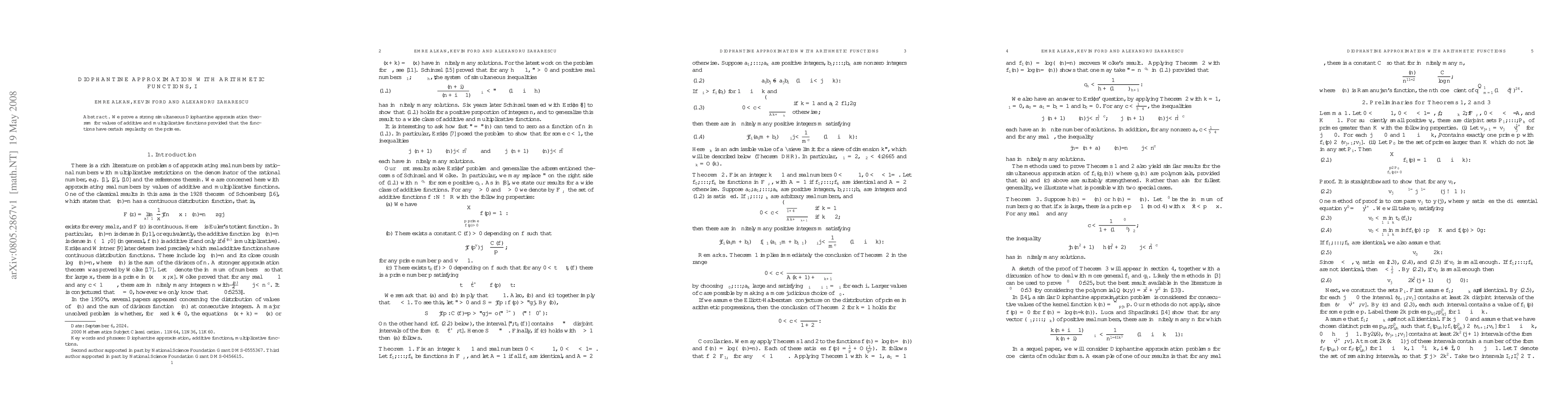 Summary: This paper establishes a robust simultaneous Diophantine approximation theorem for additive and multiplicative functions, contingent on the functions exhibiting specific regularity properties on prime numbers. The theorem enhances the understanding of how these functions approximate rational numbers.