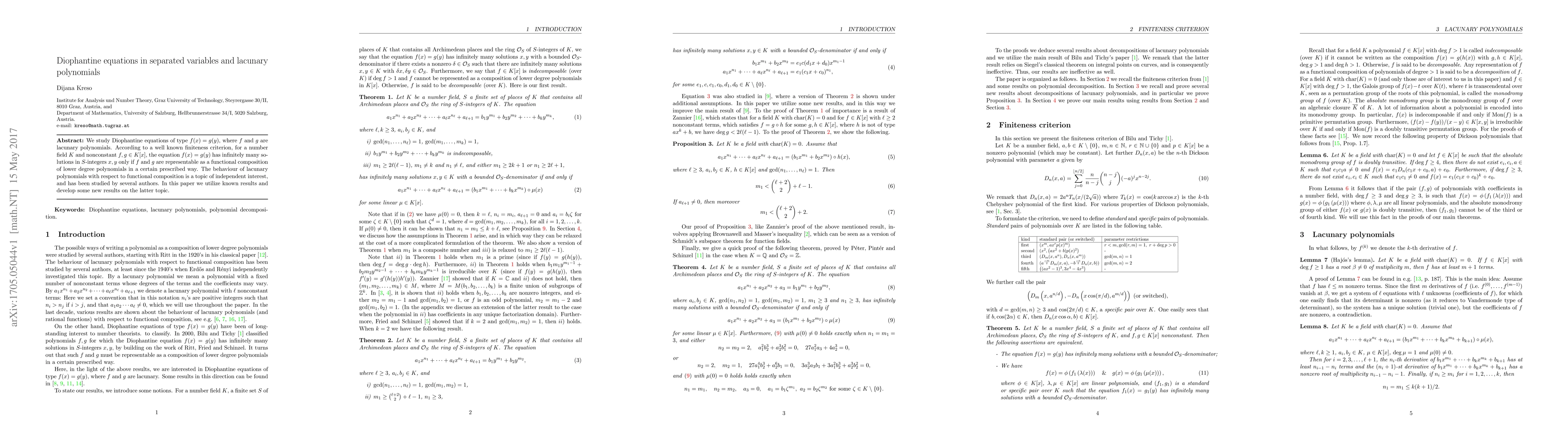 This research paper investigates Diophantine equations involving lacunary polynomials, finding that they can only have infinitely many solutions under specific conditions related to functional composition. The study provides new insights into the behavior of lacunary polynomials.