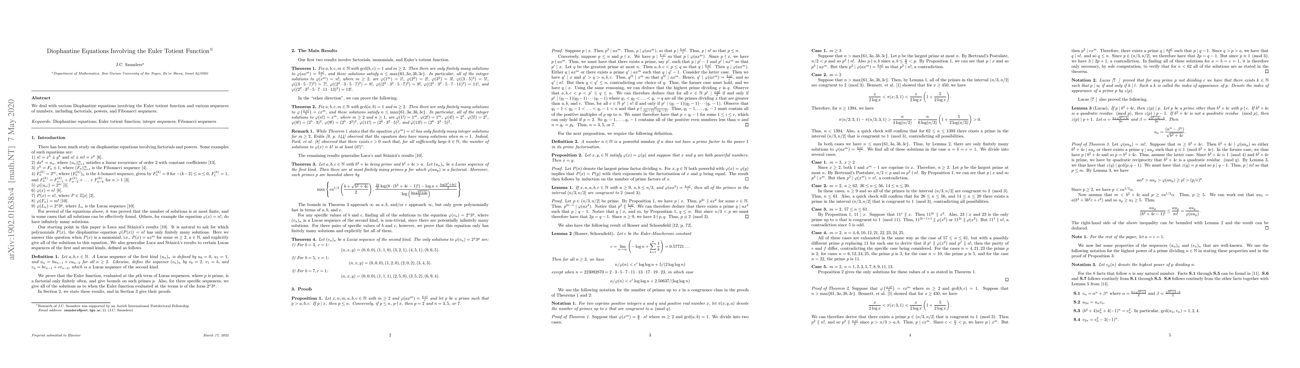 We deal with various Diophantine equations involving the Euler totient function and various sequences of numbers, including factorials, powers, and Fibonacci sequences.