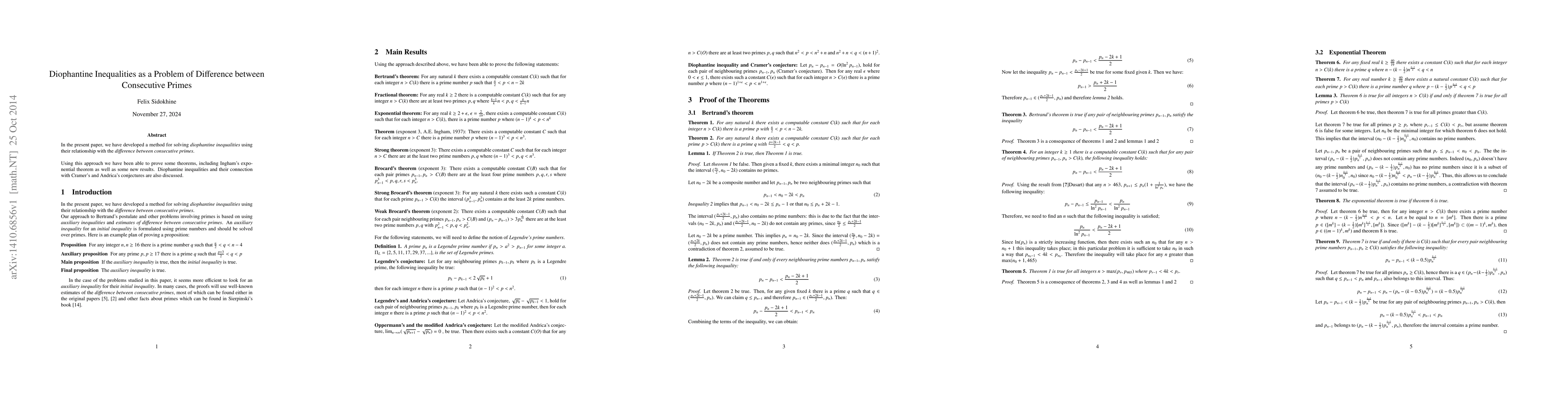 Researchers developed a method to solve diophantine inequalities using the difference between consecutive primes, proving Ingham's exponential theorem and new results, with implications for Cramer's and Andrica's conjectures.