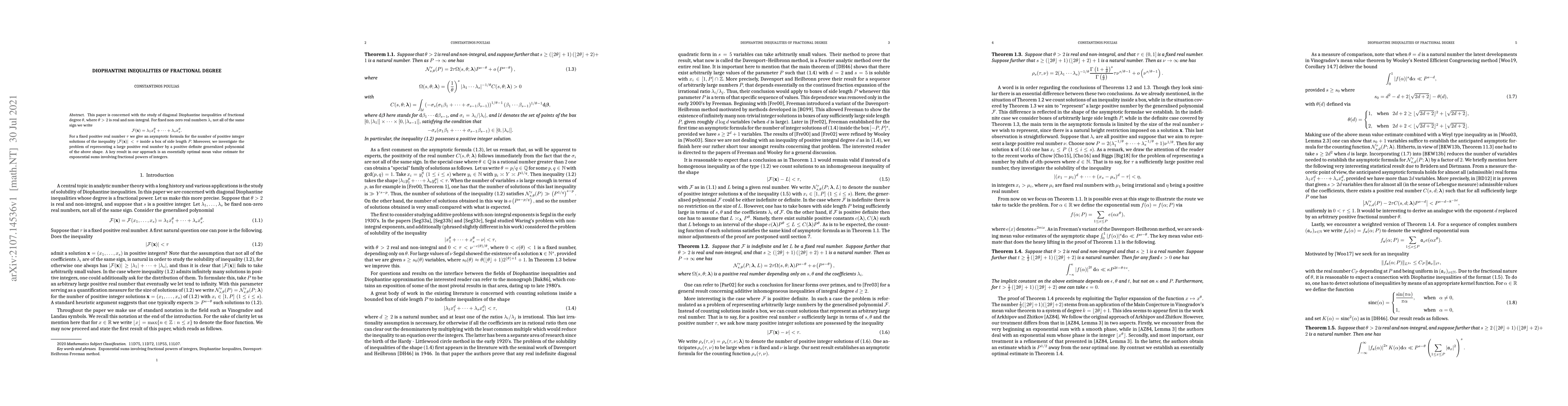 This paper is concerned with the study of diagonal Diophantine inequalities of fractional degree $ \theta ,$ where $ \theta >2$ is real and non-integral. For fixed non-zero real numbers $ \lambda_i $ not all of the same sign we write \begin{equation*} \mathcal F (\textbf{x}) = \lambda_1 x_1^\theta + \cdots + \lambda_s x_s^\theta. \end{equation*} For a fixed positive real number $ \tau $ we give an asymptotic formula for the number of positive integer solutions of the inequality $ | \mathcal F (\textbf{x}) | < \tau $ inside a box of side length $P.$ Moreover, we investigate the problem of representing a large positive real number by a positive definite generalized polynomial of the above shape. A key result in our approach is an essentially optimal mean value estimate for exponential sums involving fractional powers of integers.
