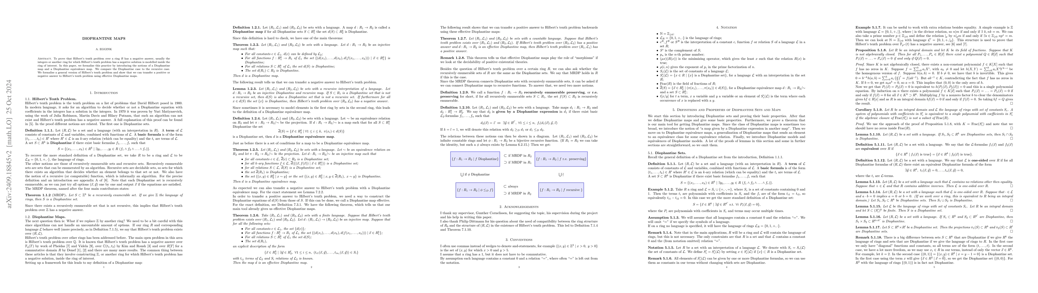 To prove that Hilbert's tenth problem over a ring R has a negative answer, usually the integers or another ring for which Hilbert's tenth problem has a negative solution is modelled inside the ring of interest. In this paper, we formalize this practice by introducing the notions of a Diophantine map and a Diophantine equivalence map. We compare the Diophantine case to the recursive case. We formalize a general version of Hilbert's tenth problem and show that we can transfer a positive or negative answer to Hilbert's tenth problem using effective Diophantine maps.