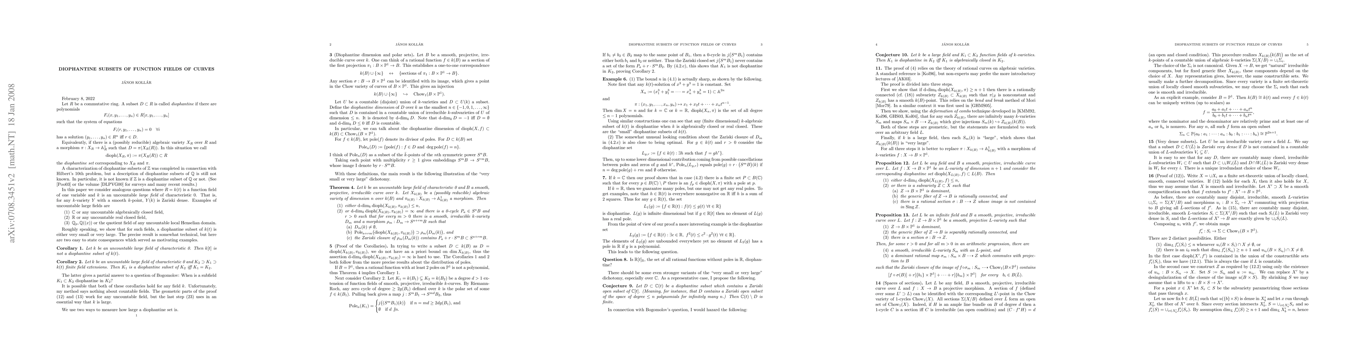 Summary: The paper demonstrates that diophantine subsets of function fields of curves are either extremely small or very large, concluding that the polynomial ring $k[t]$ is not a diophantine subset of the field of rational functions $k(t)$ for numerous fields $k$.