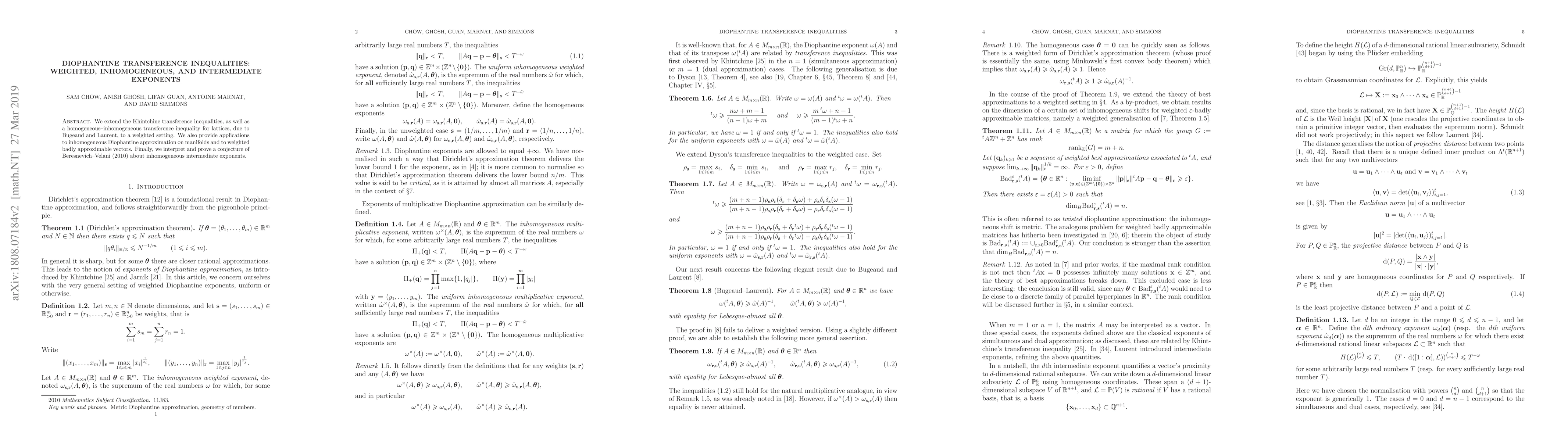 This paper extends the Khintchine and Bugeaud-Laurent transference inequalities to a weighted context, applying these results to inhomogeneous Diophantine approximation on manifolds and to weighted badly approximable vectors, and proving a conjecture by Beresnevich and Velani regarding inhomogeneous intermediate exponents.
