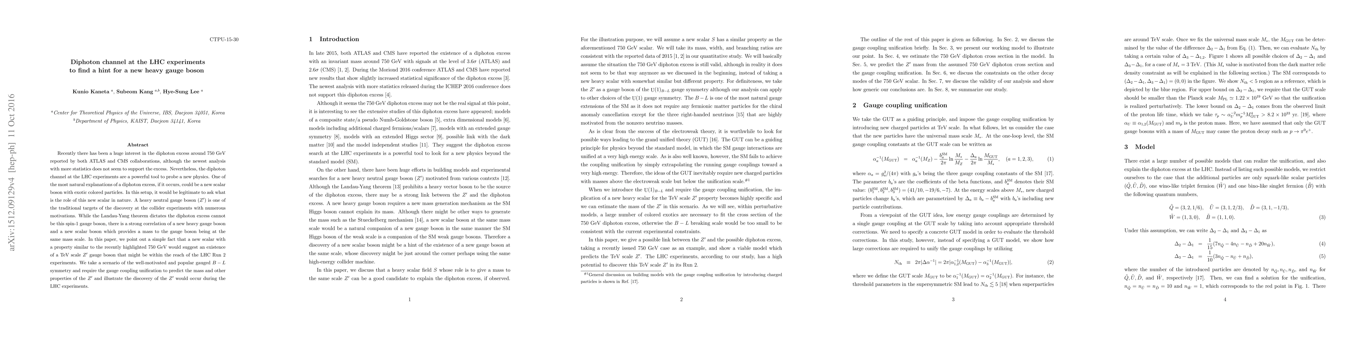 Recently there has been a huge interest in the diphoton excess around 750 GeV reported by both ATLAS and CMS collaborations, although the newest analysis with more statistics does not seem to support the excess. Nevertheless, the diphoton channel at the LHC experiments are a powerful tool to probe a new physics. One of the most natural explanations of a diphoton excess, if it occurs, could be a new scalar boson with exotic colored particles. In this setup, it would be legitimate to ask what is the role of this new scalar in nature. A heavy neutral gauge boson ($Z'$) is one of the traditional targets of the discovery at the collider experiments with numerous motivations. While the Landau-Yang theorem dictates the diphoton excess cannot be this spin-1 gauge boson, there is a strong correlation of a new heavy gauge boson and a new scalar boson which provides a mass to the gauge boson being at the same mass scale. In this paper, we point out a simple fact that a new scalar with a property similar to the recently highlighted 750 GeV would suggest an existence of a TeV scale $Z'$ gauge boson that might be within the reach of the LHC Run 2 experiments. We take a scenario of the well-motivated and popular gauged $B-L$ symmetry and require the gauge coupling unification to predict the mass and other properties of the $Z'$ and illustrate the discovery of the $Z'$ would occur during the LHC experiments.
