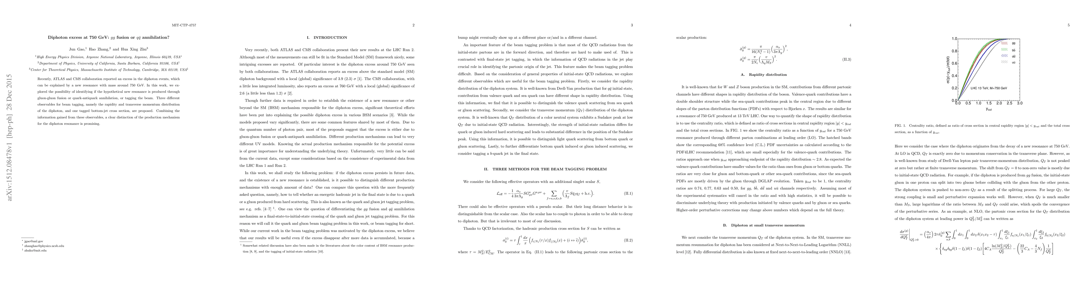 This paper investigates whether a new resonance at 750 GeV, observed in diphoton events by ATLAS and CMS, is produced via gluon-gluon fusion or quark-antiquark annihilation. It proposes three observables for beam tagging, aiming to distinguish between the production mechanisms.