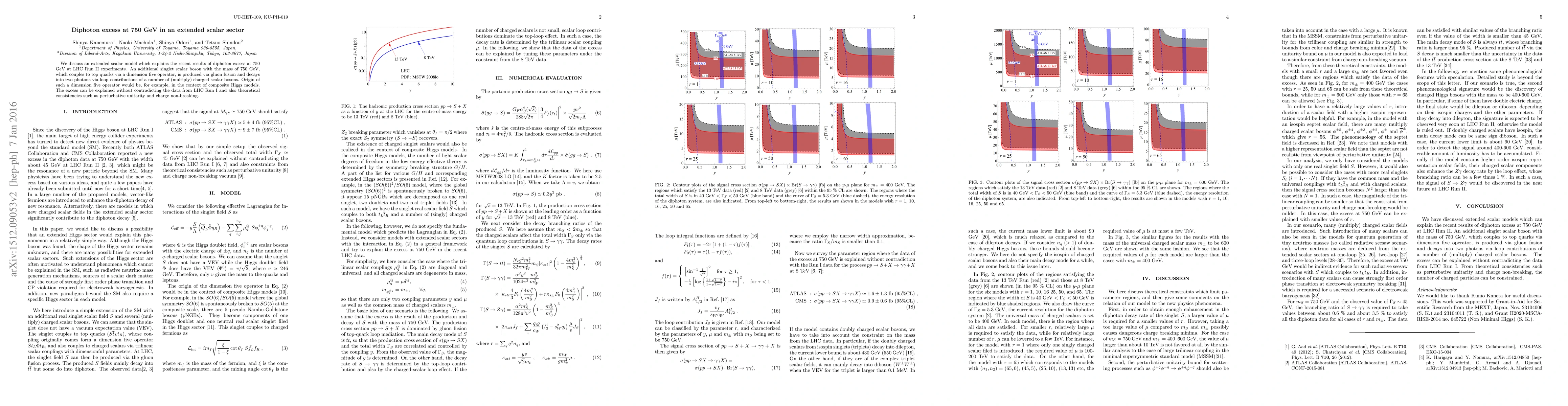 We discuss an extended scalar model which explains the recent results of diphoton excess at 750 GeV at LHC Run II experiments. An additional singlet scalar boson with the mass of 750 GeV, which couples to top quarks via a dimension five operator, is produced via gluon fusion and decays into two photons via loop contributions of a number of (multiply) charged scalar bosons. Origin of such a dimension five operator would be, for example, in the context of composite Higgs models. The excess can be explained without contradicting the data from LHC Run I and also theoretical consistencies such as perturbative unitarity and charge non-breaking.