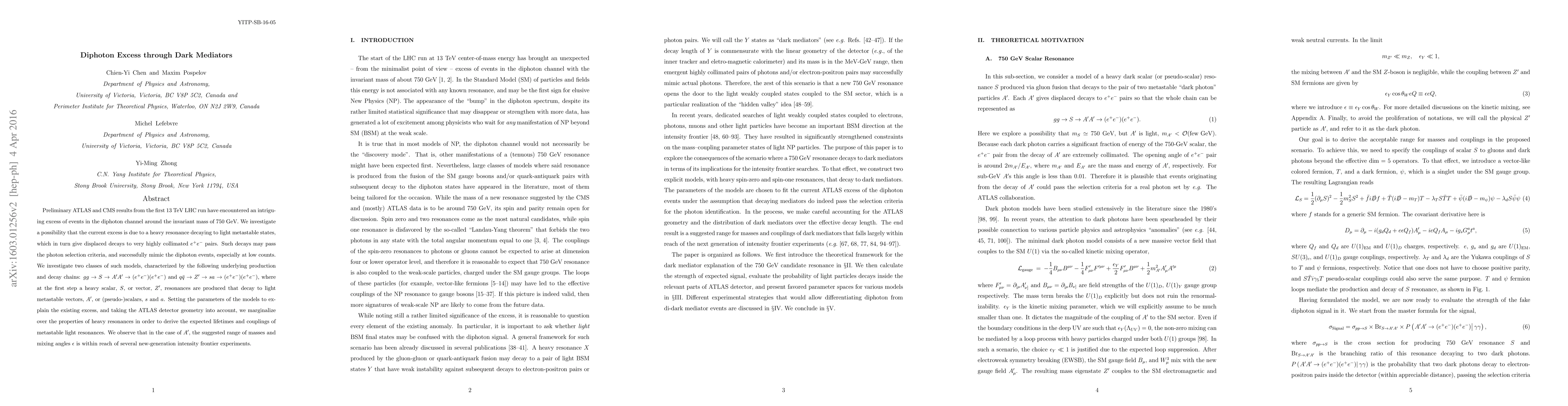 Preliminary ATLAS and CMS results from the first 13 TeV LHC run have encountered an intriguing excess of events in the diphoton channel around the invariant mass of 750 GeV. We investigate a possibility that the current excess is due to a heavy resonance decaying to light metastable states, which in turn give displaced decays to very highly collimated $e^+e^-$ pairs. Such decays may pass the photon selection criteria, and successfully mimic the diphoton events, especially at low counts. We investigate two classes of such models, characterized by the following underlying production and decay chains: $gg \to S\to A'A'\to (e^+e^-)(e^+e^-)$ and $q\bar q \to Z' \to sa\to (e^+e^-)(e^+e^-)$, where at the first step a heavy scalar, $S$, or vector, $Z'$, resonances are produced that decay to light metastable vectors, $A'$, or (pseudo-)scalars, $s$ and $a$. Setting the parameters of the models to explain the existing excess, and taking the ATLAS detector geometry into account, we marginalize over the properties of heavy resonances in order to derive the expected lifetimes and couplings of metastable light resonances. We observe that in the case of $A'$, the suggested range of masses and mixing angles $\epsilon$ is within reach of several new-generation intensity frontier experiments.