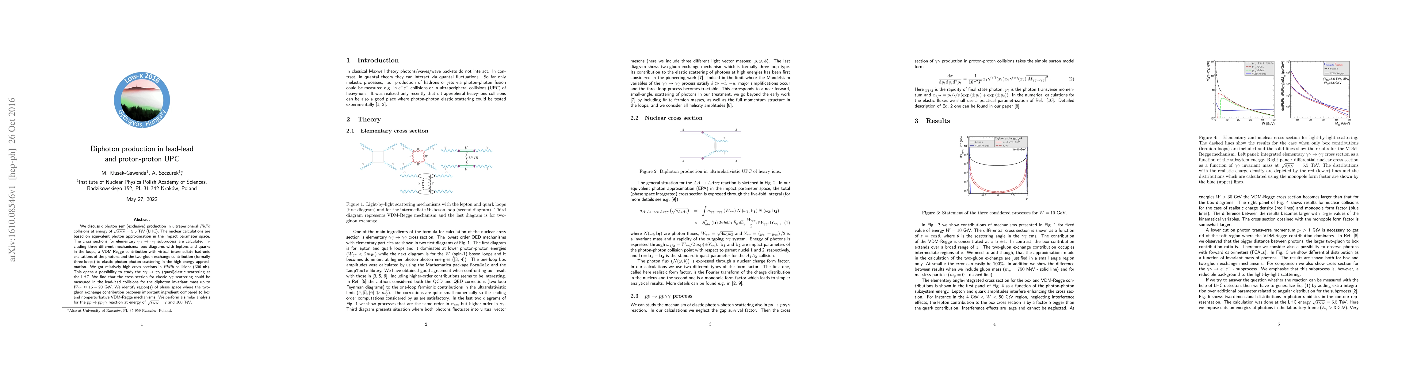 Researchers found high cross-sections for diphoton production in lead-lead collisions at 5.5 TeV, opening a possibility to study gamma-gamma scattering at the LHC, and identified regions of phase space where two-gluon exchange becomes important.