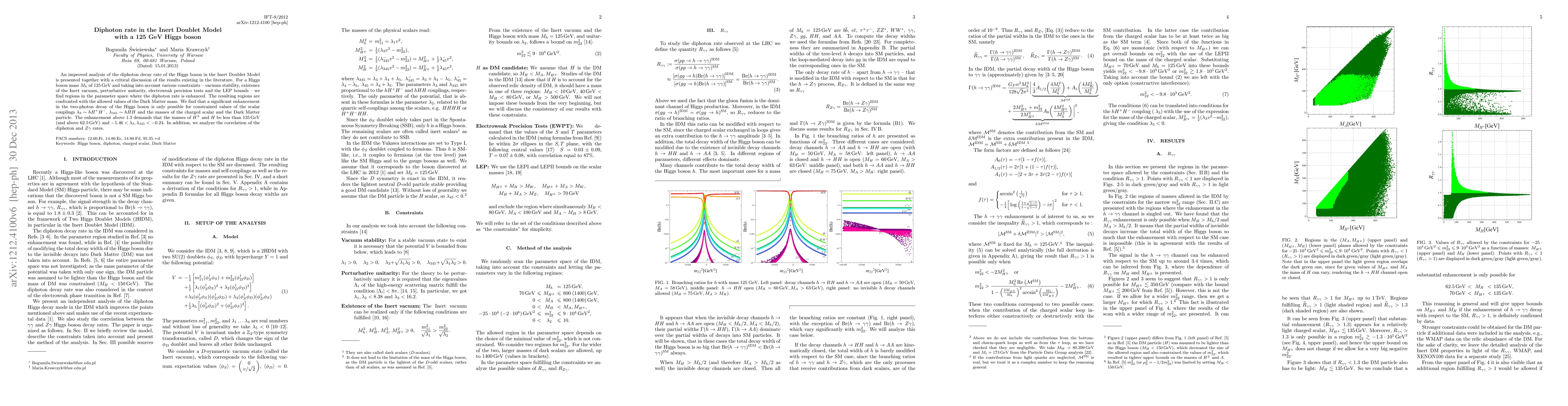 This paper analyzes the diphoton decay rate of the 125 GeV Higgs boson within the Inert Doublet Model, finding regions where the rate is enhanced under various constraints. Significant enhancement above 1.3 requires specific scalar couplings and masses for the charged scalar and Dark Matter particle.