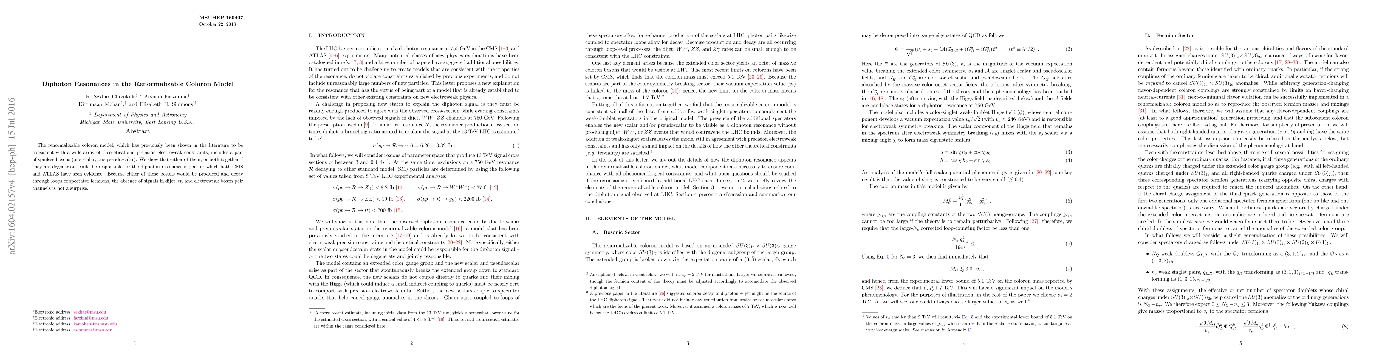 This paper explores the renormalizable coloron model, demonstrating that its spinless bosons—a scalar and a pseudoscalar—could generate the diphoton resonance observed by CMS and ATLAS. The absence of signals in other channels is explained by their production and decay via fermion loops.