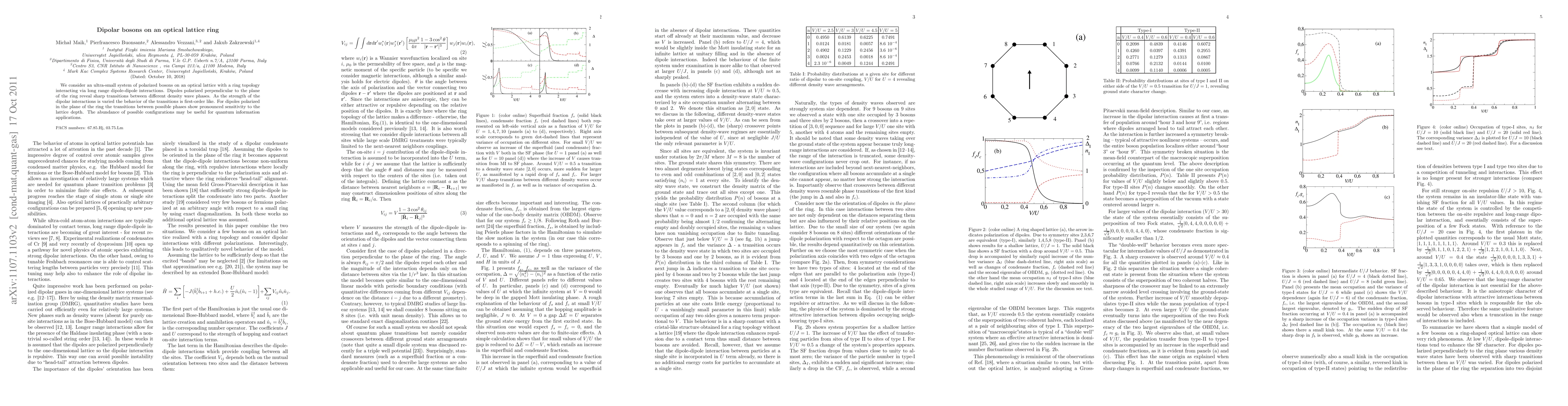 This study explores polarized bosons on a ring-shaped optical lattice with long-range dipole-dipole interactions, finding sharp transitions between density wave phases dependent on dipolar orientation and interaction strength. The complexity of phase transitions and configurations suggests potential for quantum information applications.