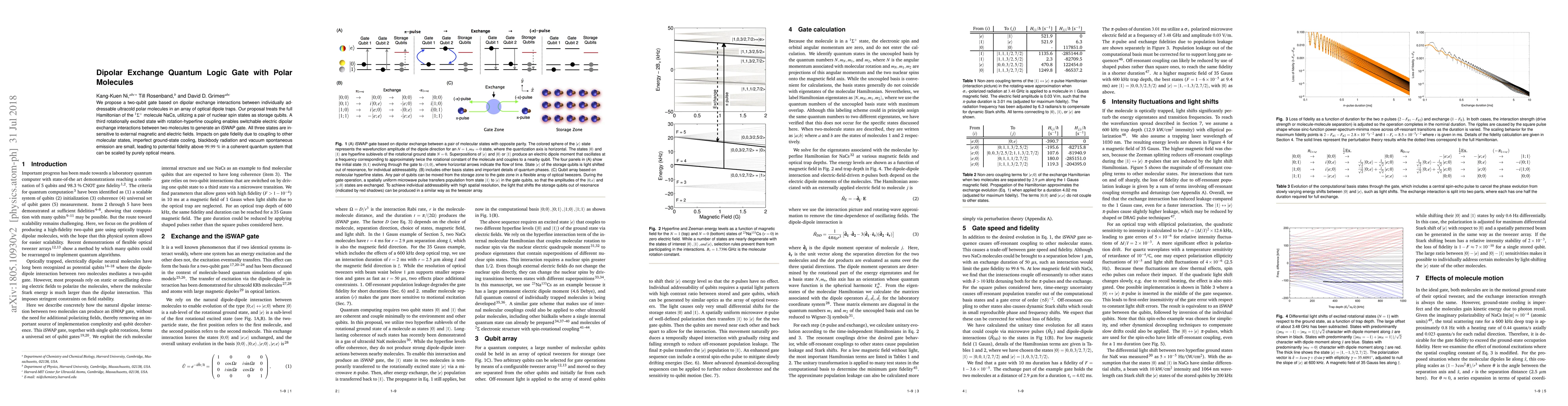 This paper proposes a two-qubit quantum logic gate using dipolar exchange interactions between ultracold polar molecules in optical dipole traps, with NaCs molecules and nuclear spin states as qubits. The gate achieves high fidelity above 99.99% by leveraging a third rotationally excited state and is scalable by optical means.