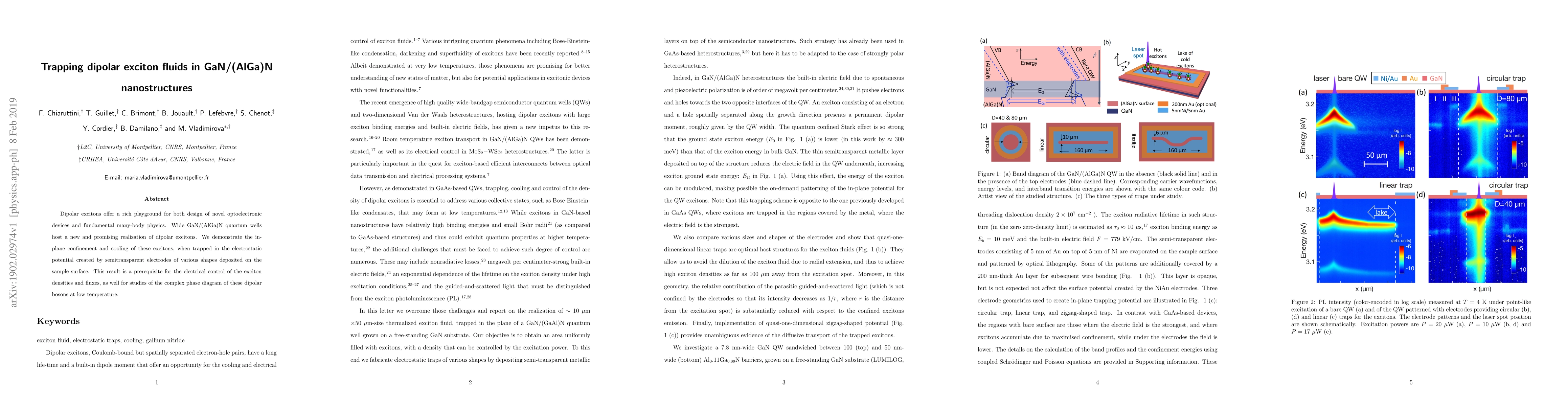 This paper explores the potential of dipolar excitons in GaN/(AlGa)N quantum wells for novel optoelectronic devices and fundamental physics. The study demonstrates the in-plane confinement and cooling of these excitons using semitransparent electrodes, paving the way for electrical control and detailed phase diagram studies.