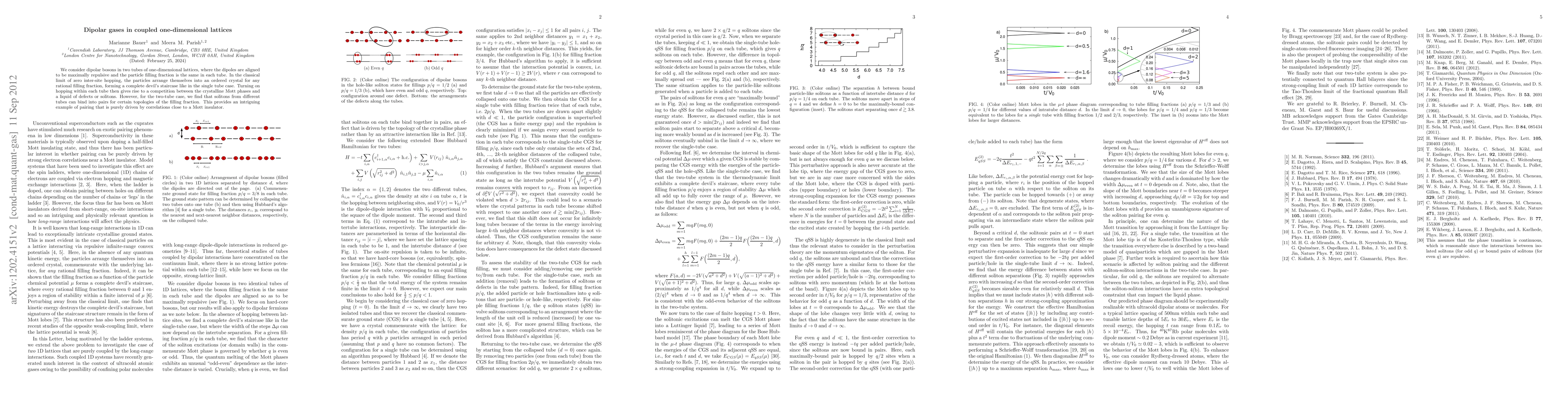 Researchers found that in a system of two one-dimensional lattices with interacting particles, solitons from different tubes can bind into pairs for certain filling fractions, providing an example of correlated pairing near a Mott insulator.