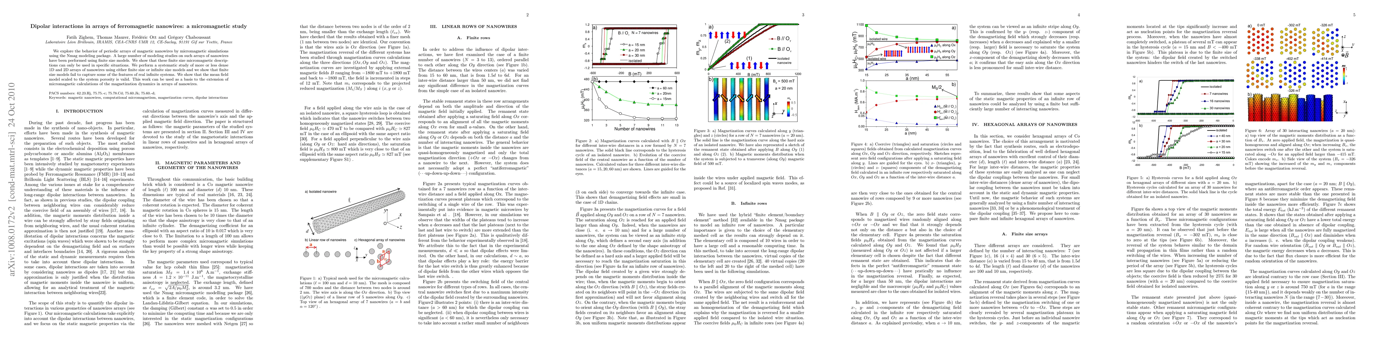 This paper uses micromagnetic simulations to study dipolar interactions in arrays of ferromagnetic nanowires, revealing that finite size models are insufficient for capturing all features of infinite systems. The study validates the mean field model scaled to system porosity for accurate representation.