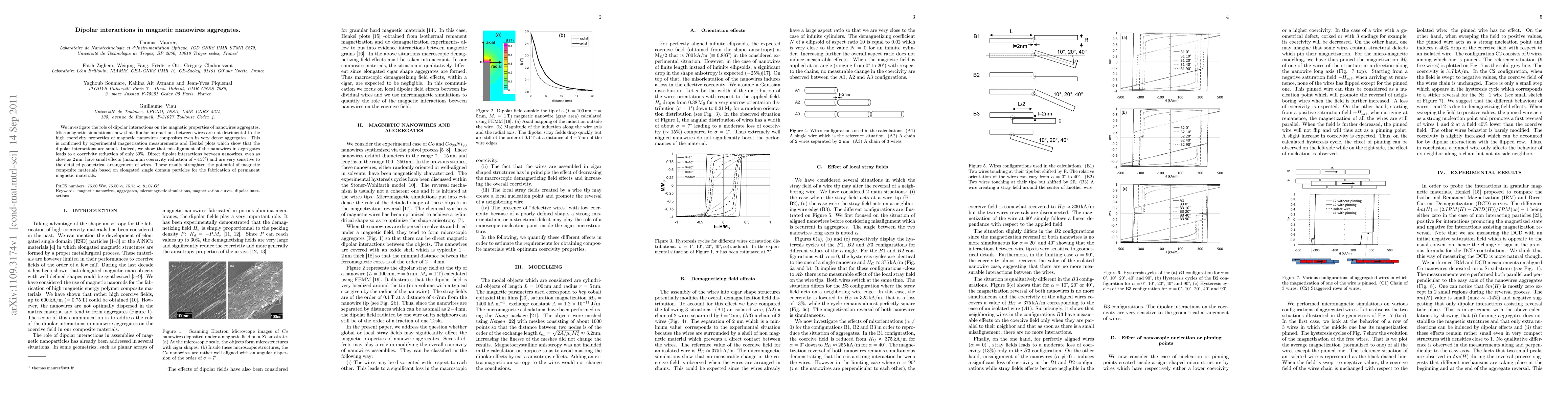 We investigate the role of dipolar interactions on the magnetic properties of nanowires aggregates. Micromagnetic simulations show that dipolar interactions between wires are not detrimental to the high coercivity properties of magnetic nanowires composites even in very dense aggregates. This is confirmed by experimental magnetization measurements and Henkel plots which show that the dipolar interactions are small. Indeed, we show that misalignment of the nanowires in aggregates leads to a coercivity reduction of only 30%. Direct dipolar interactions between nanowires, even as close as 2 nm, have small effects (maximum coercivity reduction of ~15%) and are very sensitive to the detailed geometrical arrangement of wires. These results strenghten the potential of magnetic composite materials based on elongated single domain particles for the fabrication of permanent magnetic materials.