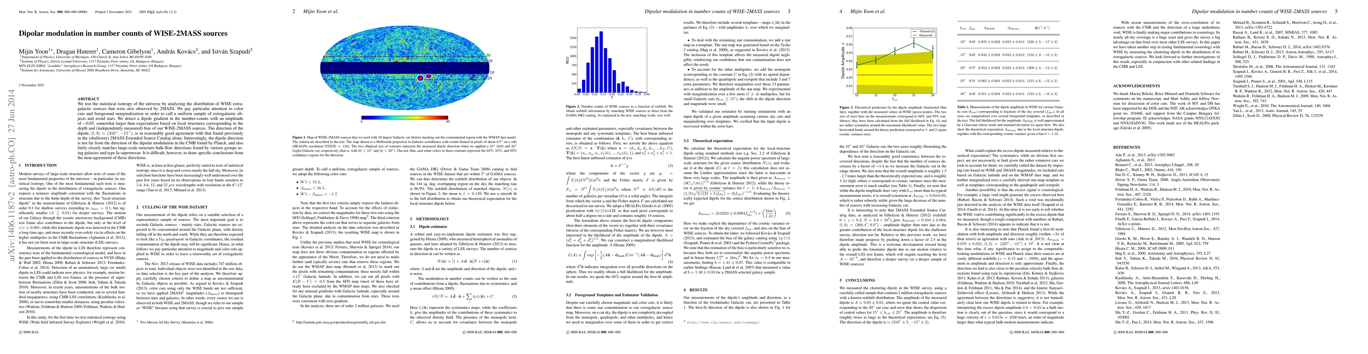 We test the statistical isotropy of the universe by analyzing the distribution of WISE extragalactic sources that were also observed by 2MASS. We pay particular attention to color cuts and foreground marginalization in order to cull a uniform sample of extragalactic objects and avoid stars. We detect a dipole gradient in the number-counts with an amplitude of $\sim$0.05, somewhat larger than expectations based on local structures corresponding to the depth and (independently measured) bias of our WISE-2MASS sources. The direction of the dipole, $(l,b)\simeq (310\,^{\circ}, -15\,^{\circ})$, is in reasonably good agreement with that found previously in the (shallower) 2MASS Extended Source Catalog alone. Interestingly, the dipole direction is not far from the direction of the dipolar modulation in the CMB found by Planck, and also fairly closely matches large-scale-structure bulk-flow directions found by various groups using galaxies and type Ia supernovae. It is difficult, however, to draw specific conclusions from the near-agreement of these directions.