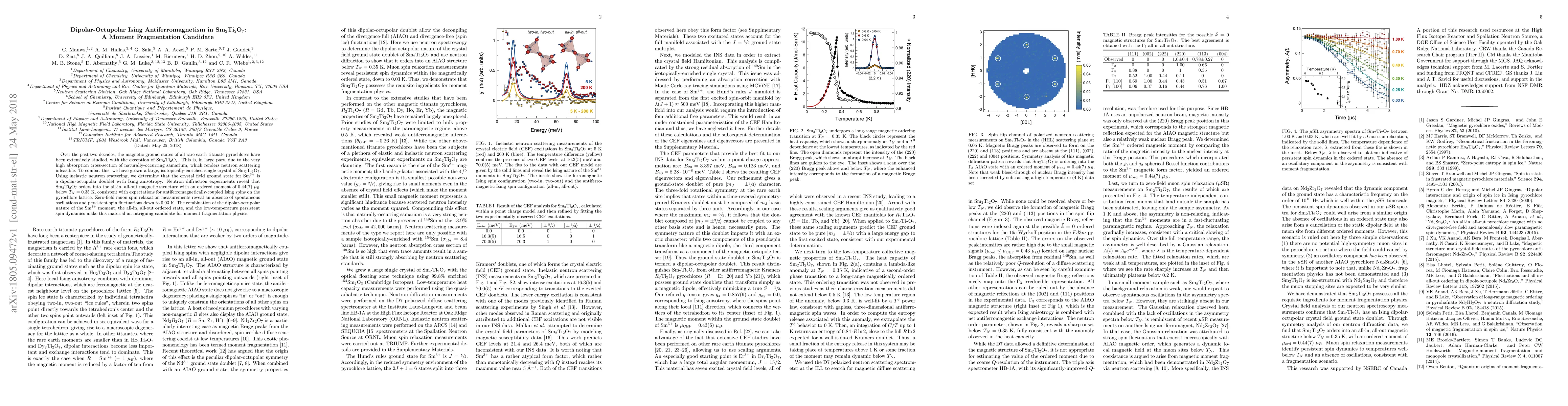 This research paper discovers that Sm2Ti2O7 exhibits dipolar-octupolar Ising antiferromagnetism with an ordered moment of 0.44 μB, making it a candidate for studying moment fragmentation physics.