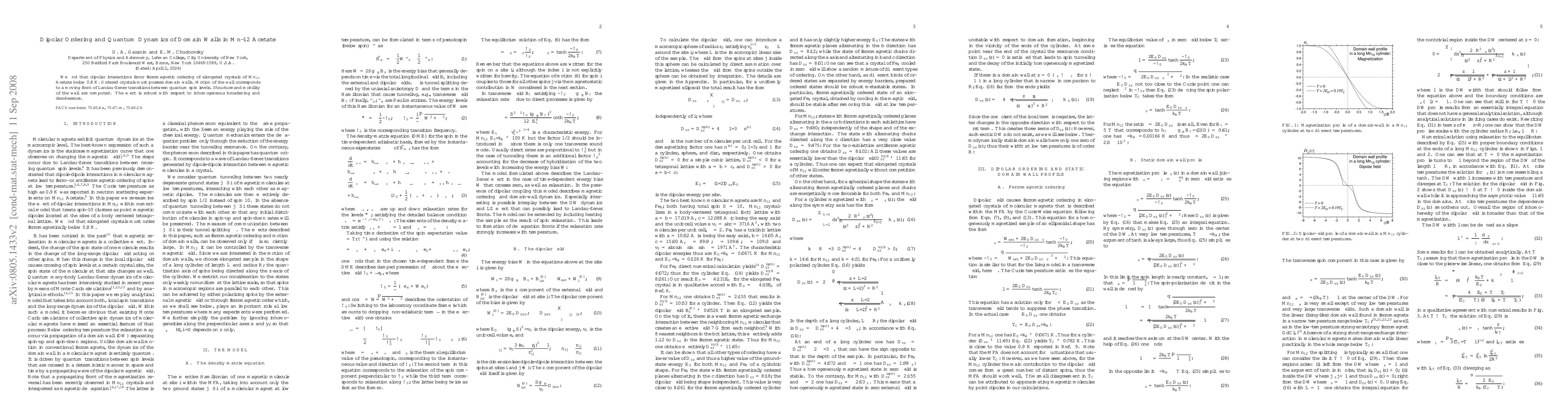 The research identifies dipolar interactions causing ferromagnetic ordering in elongated Mn12 Acetate crystals below 0.8K, with domain walls exhibiting mobility through Landau-Zener transitions. The findings show robustness against inhomogeneous broadening and decoherence.