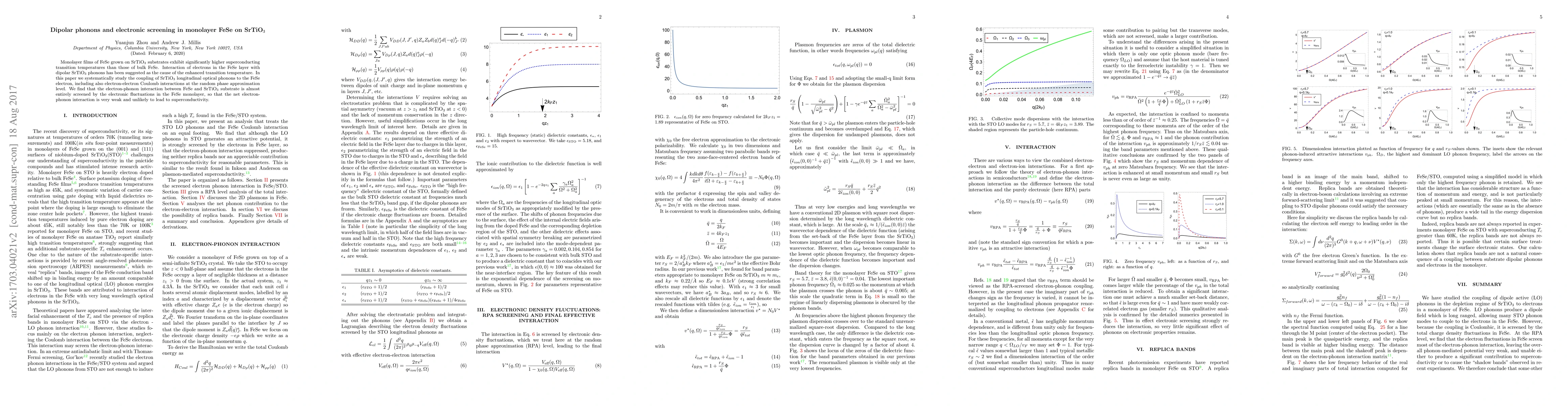 Monolayer films of FeSe grown on SrTiO$_3$ substrates exhibit significantly higher superconducting transition temperatures than those of bulk FeSe. Interaction of electrons in the FeSe layer with dipolar SrTiO$_3$ phonons has been suggested as the cause of the enhanced transition temperature. In this paper we systematically study the coupling of SrTiO$_3$ longitudinal optical phonons to the FeSe electron, including also electron-electron Coulomb interactions at the random phase approximation level. We find that the electron-phonon interaction between FeSe and SrTiO$_3$ substrate is almost entirely screened by the electronic fluctuations in the FeSe monolayer, so that the net electron-phonon interaction is very weak and unlikely to lead to superconductivity.
