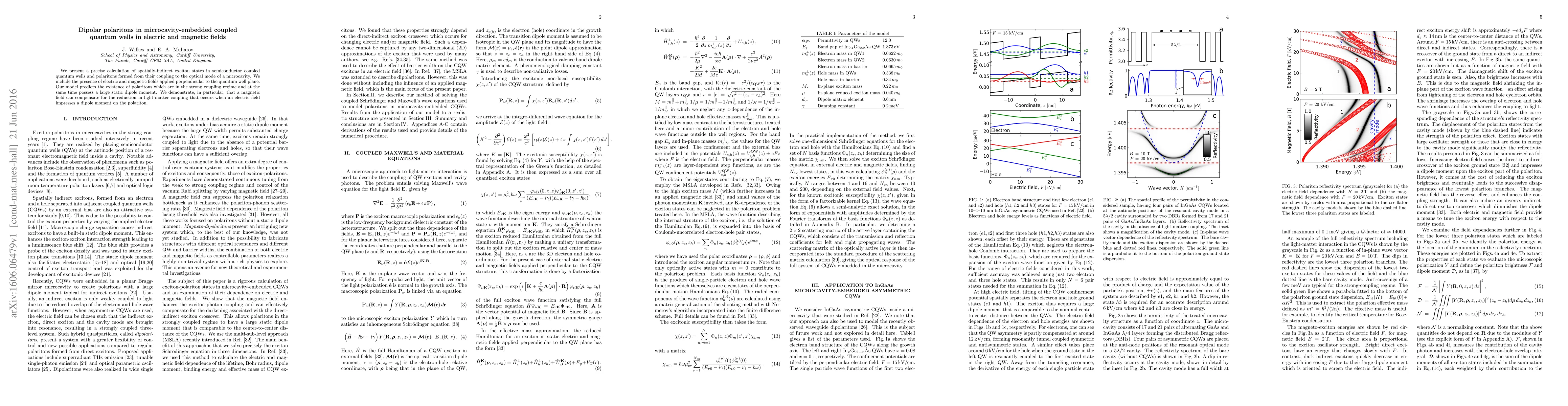 This paper calculates exciton states and dipolar polaritons in microcavity-embedded quantum wells under electric and magnetic fields, predicting strong coupling and large dipole moments, with magnetic fields compensating for the dipole moment-induced reduction in light-matter coupling.