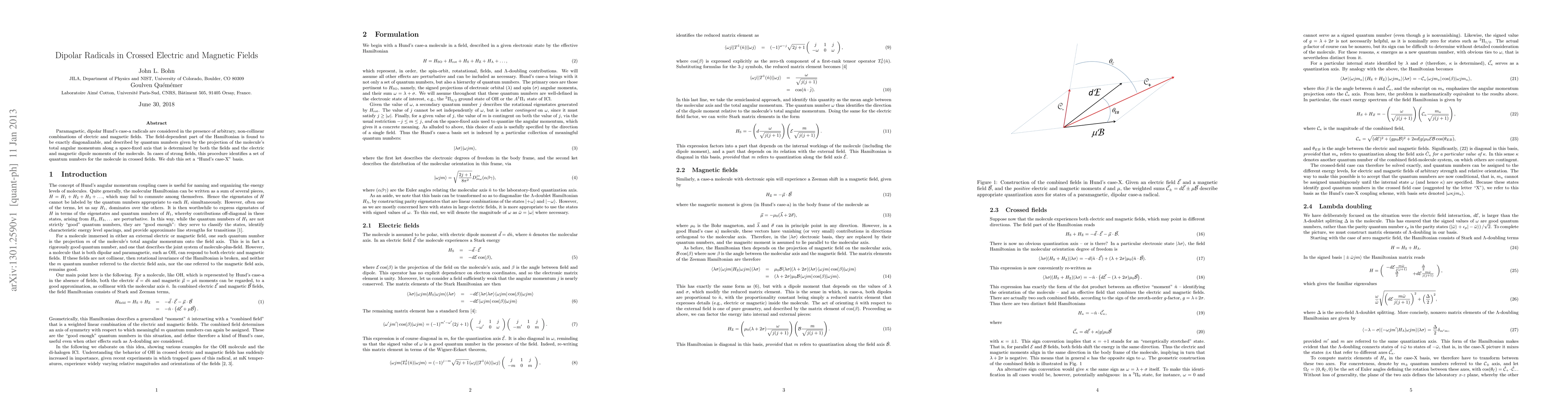 This study investigates dipolar radicals under combined electric and magnetic fields, revealing an exact diagonalization of the field-dependent Hamiltonian. It introduces a "Hund's case-X" basis to describe quantum states in strong fields, determined by the molecule's total angular momentum projection along an axis defined by the fields and dipole moments.
