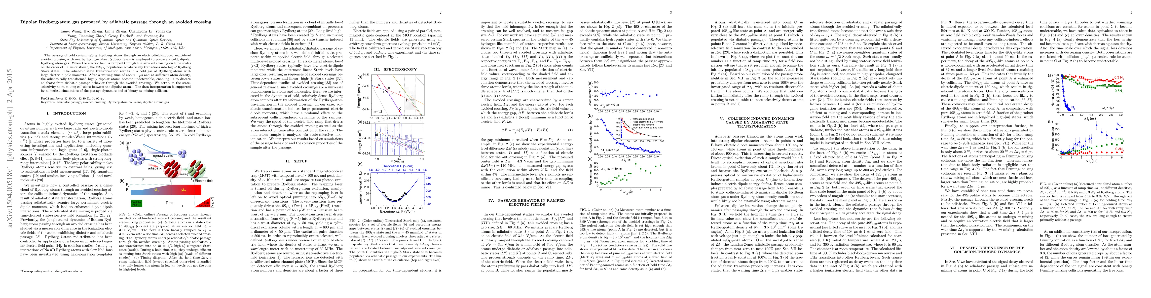 The passage of cold cesium 49S$_{1/2}$ Rydberg atoms through an electric-field-induced multi-level avoided crossing with nearby hydrogen-like Rydberg levels is employed to prepare a cold, dipolar Rydberg atom gas. When the electric field is ramped through the avoided crossing on time scales on the order of 100~ns or slower, the 49S$_{1/2}$ population adiabatically transitions into high-\emph{l} Rydberg Stark states. The adiabatic state transformation results in a cold gas of Rydberg atoms with large electric dipole moments. After a waiting time of about $1~\mu$s and at sufficient atom density, the adiabatically transformed highly dipolar atoms become undetectable, enabling us to discern adiabatic from diabatic passage behavior through the avoided crossing. We attribute the state-selectivity to $m$-mixing collisions between the dipolar atoms. The data interpretation is supported by numerical simulations of the passage dynamics and of binary $m$-mixing collisions.