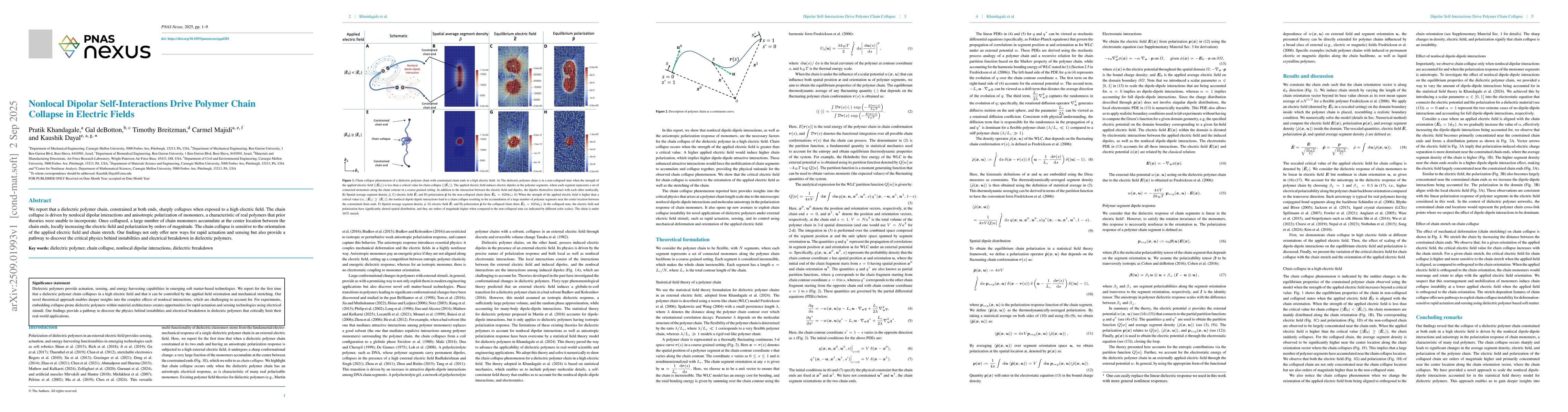 We report that a dielectric polymer chain, constrained at both ends, sharply collapses when exposed to a high electric field. The chain collapse is driven by nonlocal dipolar interactions and anisotropic polarization of monomers, a characteristic of real polymers that prior theories were unable to incorporate. Once collapsed, a large number of chain monomers accumulate at the center location between the chain ends, locally increasing the electric field and polarization by orders of magnitude. The chain collapse is sensitive to the orientation of the applied electric field and chain stretch. Our findings not only offer new ways for rapid actuation and sensing but also provide a pathway to discover the critical physics behind instabilities and electrical breakdown in dielectric polymers.