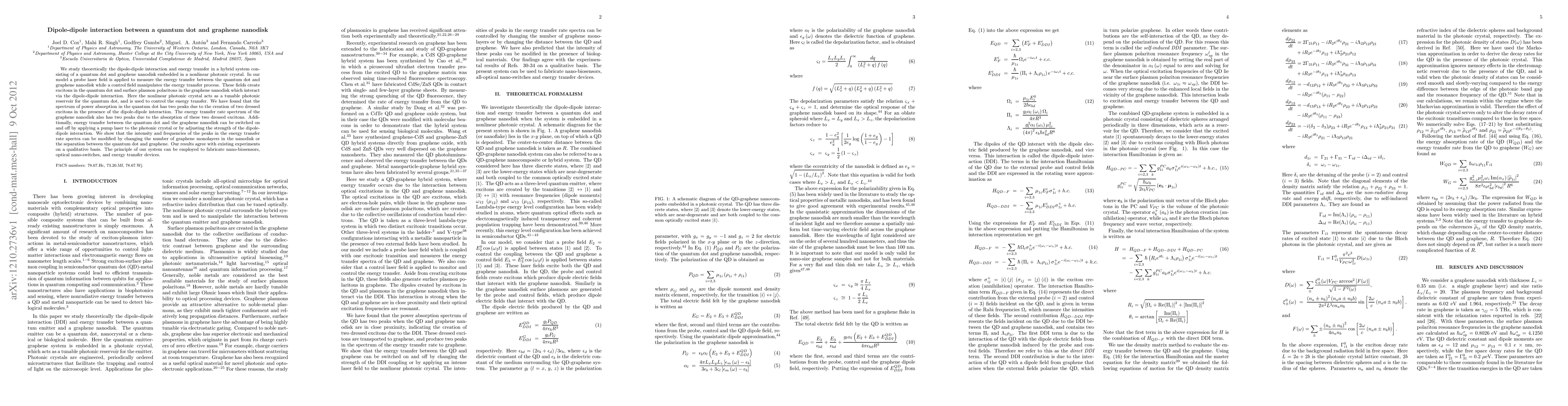 The paper presents a detailed theoretical model for understanding and controlling energy transfer in QD-graphene hybrid systems through dipole-dipole interaction, offering insights into the manipulation of excitonic states and energy transfer dynamics.