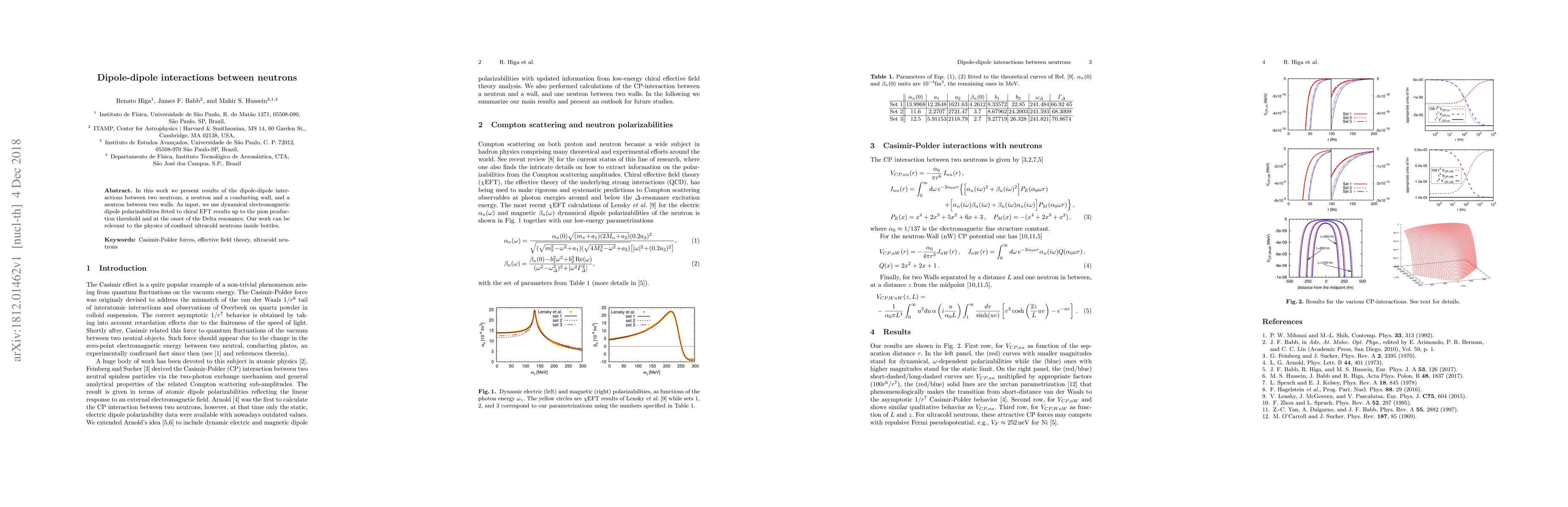 This work presents results of dipole-dipole interactions between neutrons, which is a novel and different approach from existing research on the Casimir-Polder forces.