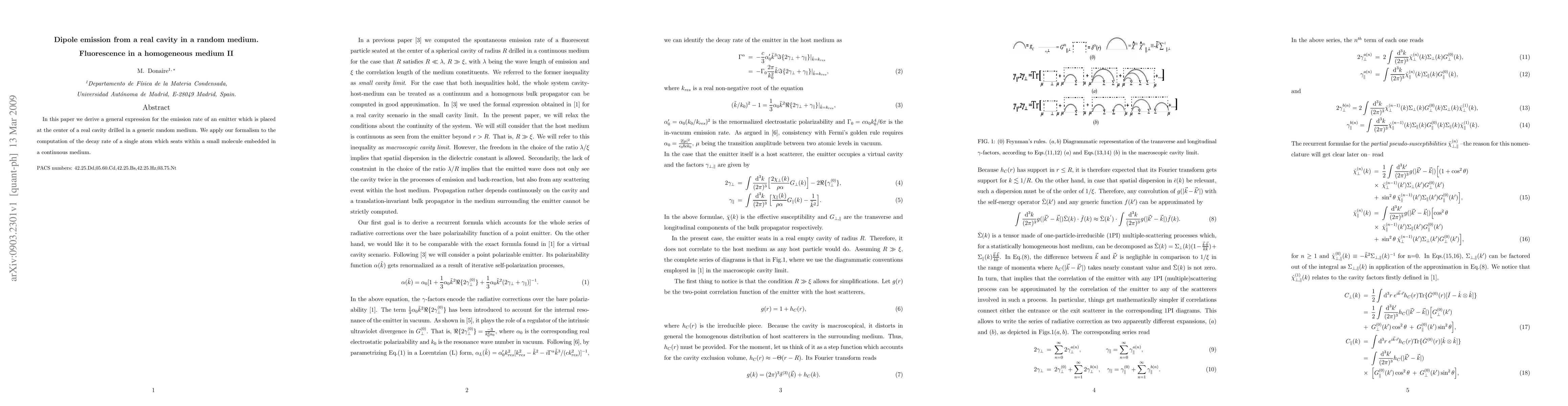 In this paper we derive a general expression for the emission rate of an emitter which is placed at the center of a real cavity drilled in a generic random medium. We apply our formalism to the computation of the decay rate of a single atom which seats within a small molecule embedded in a continuous medium.