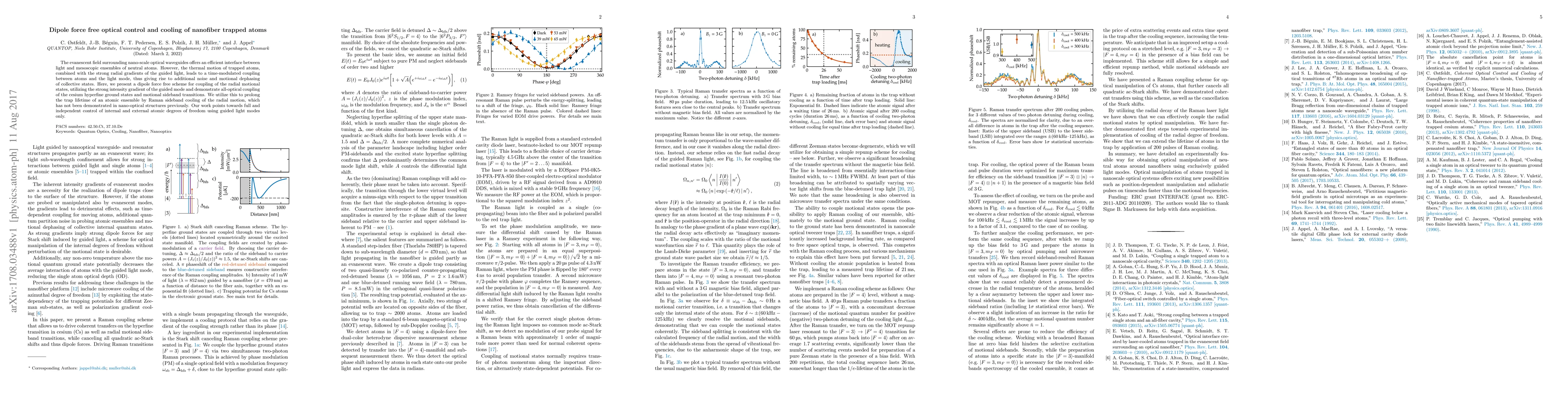 The evanescent field surrounding nano-scale optical waveguides offers an efficient interface between light and mesoscopic ensembles of neutral atoms. However, the thermal motion of trapped atoms, combined with the strong radial gradients of the guided light, leads to a time-modulated coupling between atoms and the light mode, thus giving rise to additional noise and motional dephasing of collective states. Here, we present a dipole force free scheme for coupling of the radial motional states, utilizing the strong intensity gradient of the guided mode and demonstrate all-optical coupling of the cesium hyperfine ground states and motional sideband transitions. We utilize this to prolong the trap lifetime of an atomic ensemble by Raman sideband cooling of the radial motion, which has not been demonstrated in nano-optical structures previously. Our work points towards full and independent control of internal and external atomic degrees of freedom using guided light modes only.