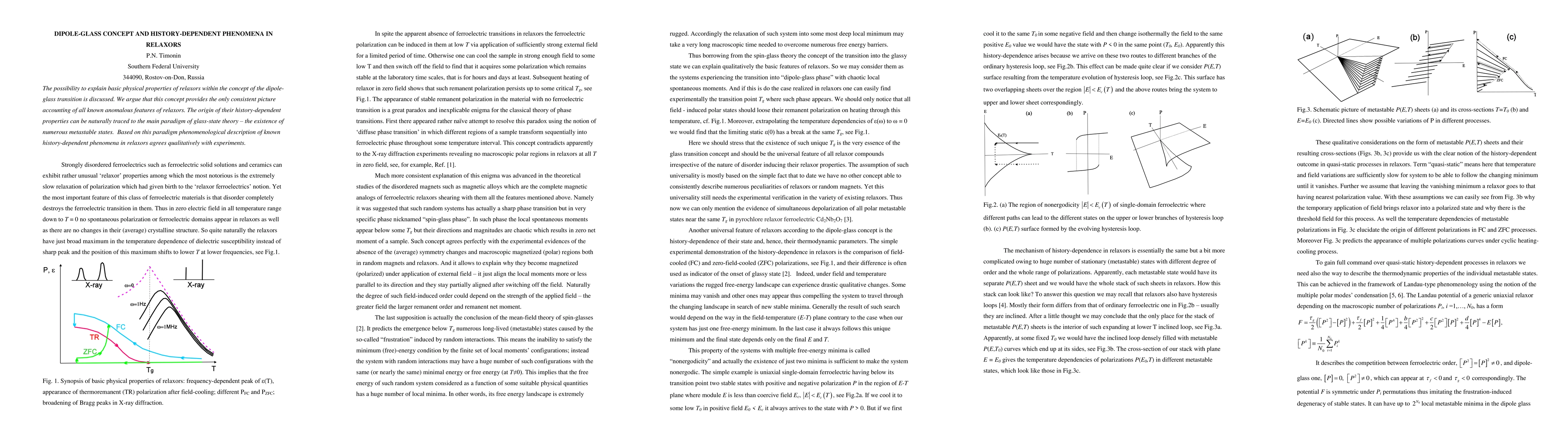 The dipole-glass concept offers a consistent explanation for the anomalous properties of relaxors, attributing their history-dependent phenomena to the existence of numerous metastable states inherent in glass-state theory. This framework aligns qualitatively with experimental observations of relaxors' behavior.