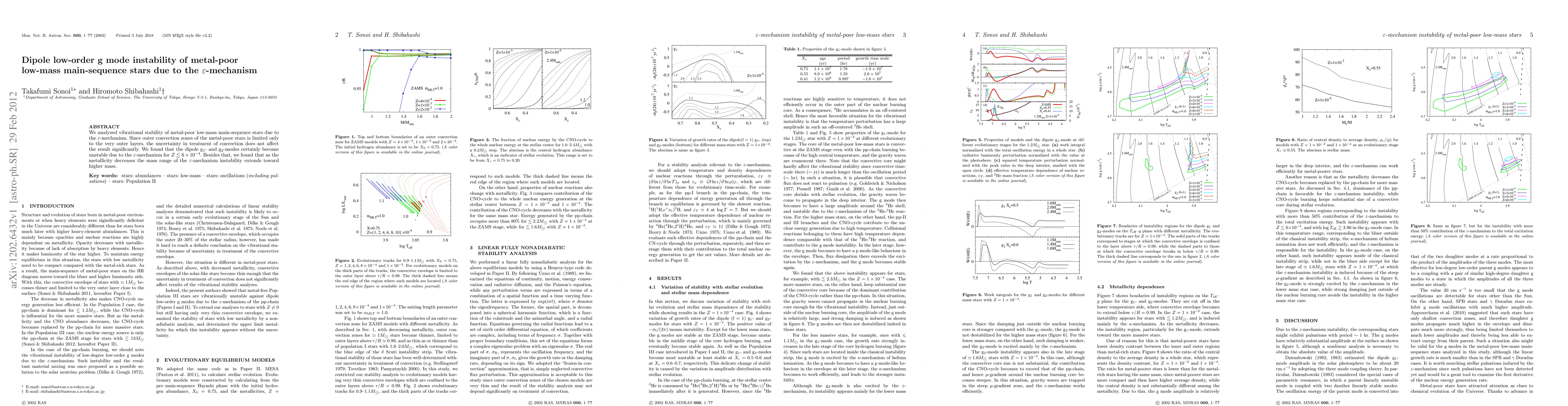 This study investigates the vibrational stability of metal-poor low-mass main-sequence stars, revealing that the dipole g$_1$- and g$_2$-modes become unstable due to the $\varepsilon$-mechanism for metallicities below $Z\la 6\times 10^{-4}$. The instability range extends to higher masses as metallicity decreases.