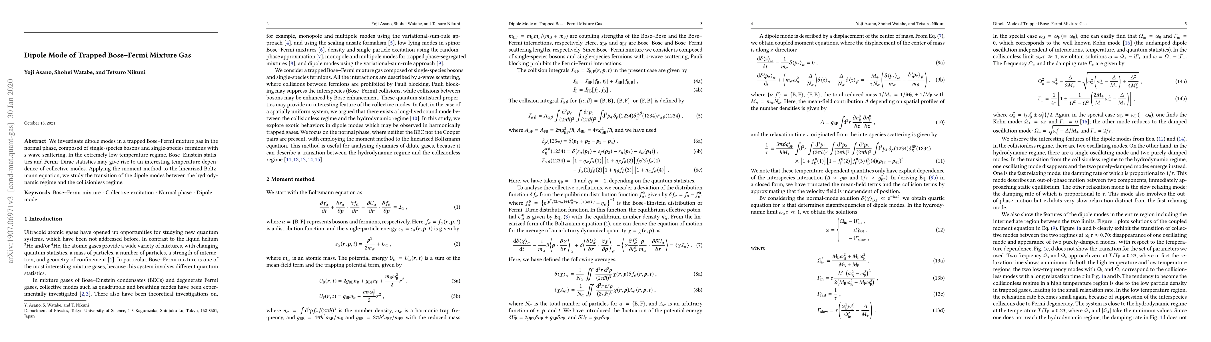 This paper examines dipole modes in a trapped Bose-Fermi mixture gas under normal phase conditions, focusing on the temperature dependence of collective modes due to Bose-Einstein and Fermi-Dirac statistics. The study uses the moment method on the linearized Boltzmann equation to analyze the transition between hydrodynamic and collisionless regimes.