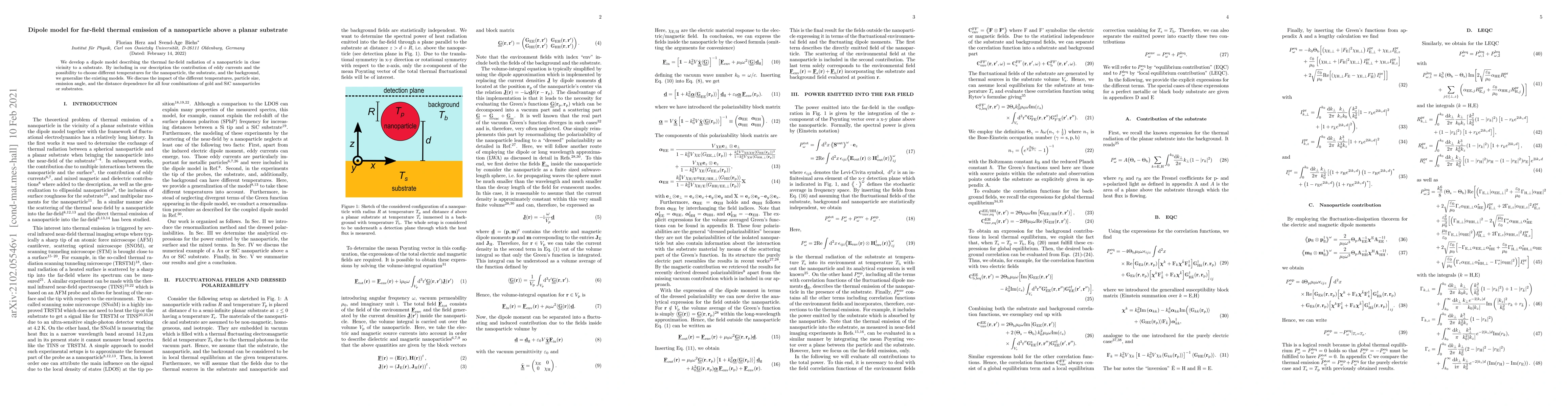 Researchers developed a dipole model to describe thermal far-field radiation of nanoparticles near a substrate, incorporating eddy currents and variable temperatures for improved accuracy.