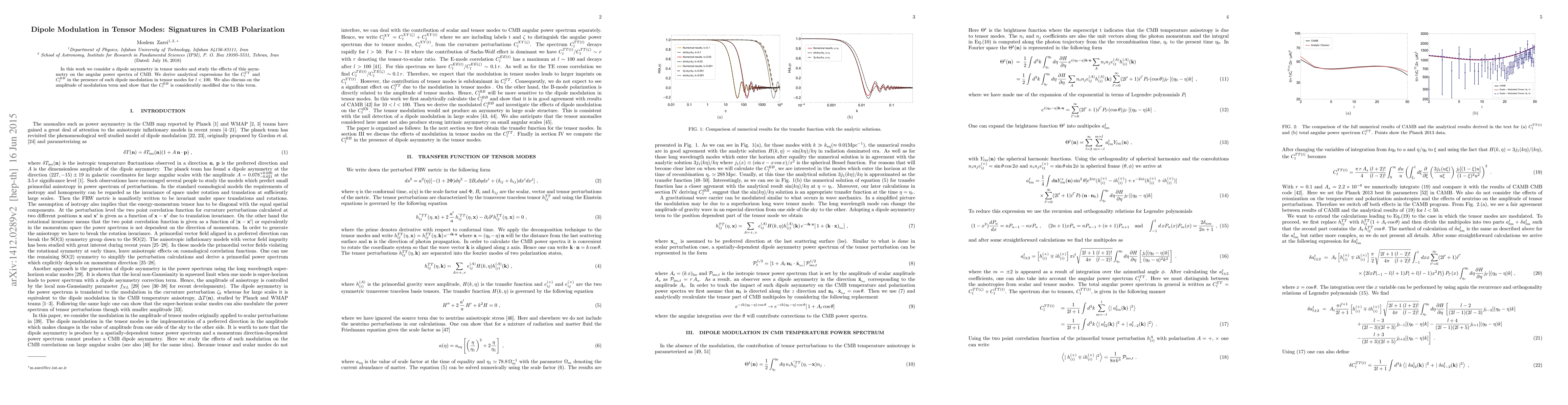 This paper investigates the impact of dipole asymmetry in tensor modes on the Cosmic Microwave Background (CMB) polarization, deriving analytical expressions for $C_{l}^{TT}$ and $C_{l}^{BB}$ angular power spectra, and demonstrating significant modifications to $C_{l}^{BB}$ due to the modulation term.
