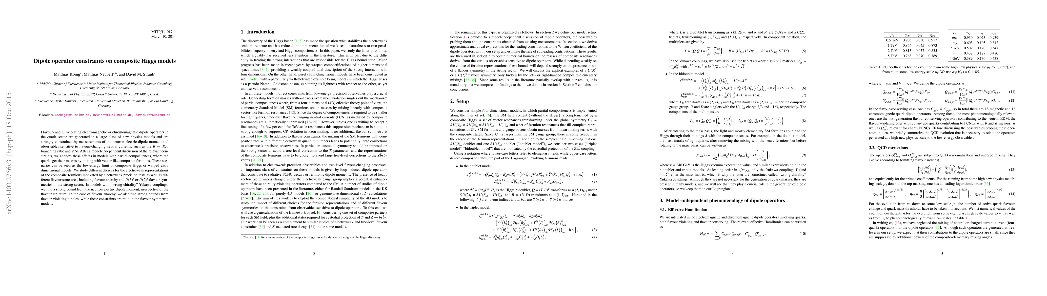 This paper examines the constraints imposed by dipole operators on composite Higgs models, particularly focusing on their impact on quark sector flavour- and CP-violations. It finds stringent limits from the neutron electric dipole moment and flavour-changing neutral current observables, especially in models with "wrong-chirality" Yukawa couplings.