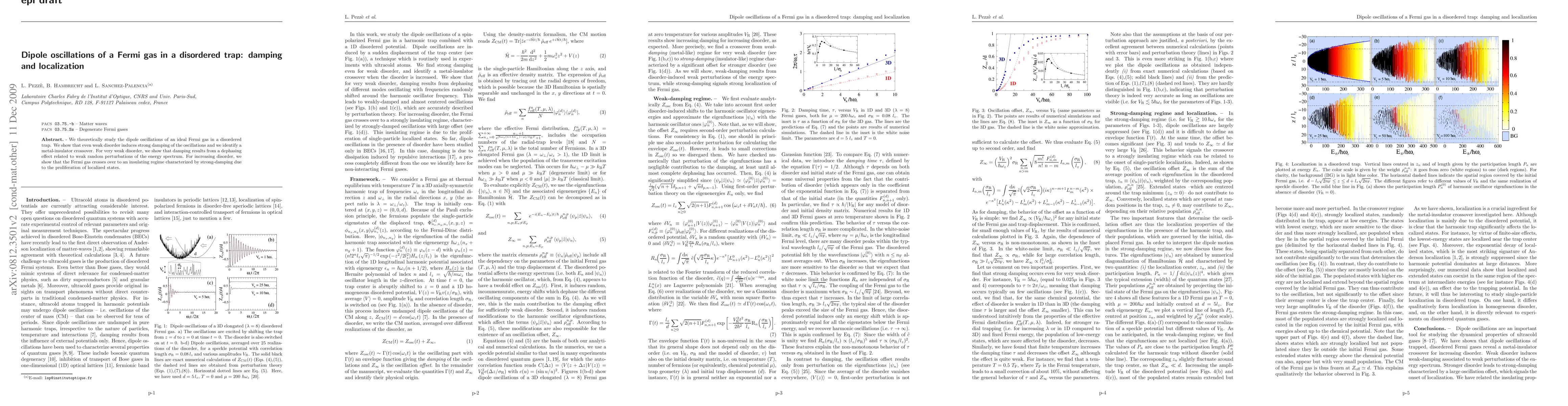 We theoretically study the dipole oscillations of an ideal Fermi gas in a disordered trap. We show that even weak disorder induces strong damping of the oscillations and we identify a metal-insulator crossover. For very weak disorder, we show that damping results from a dephasing effect related to weak random perturbations of the energy spectrum. For increasing disorder, we show that the Fermi gas crosses over to an insulating regime characterized by strong-damping due to the proliferation of localized states.