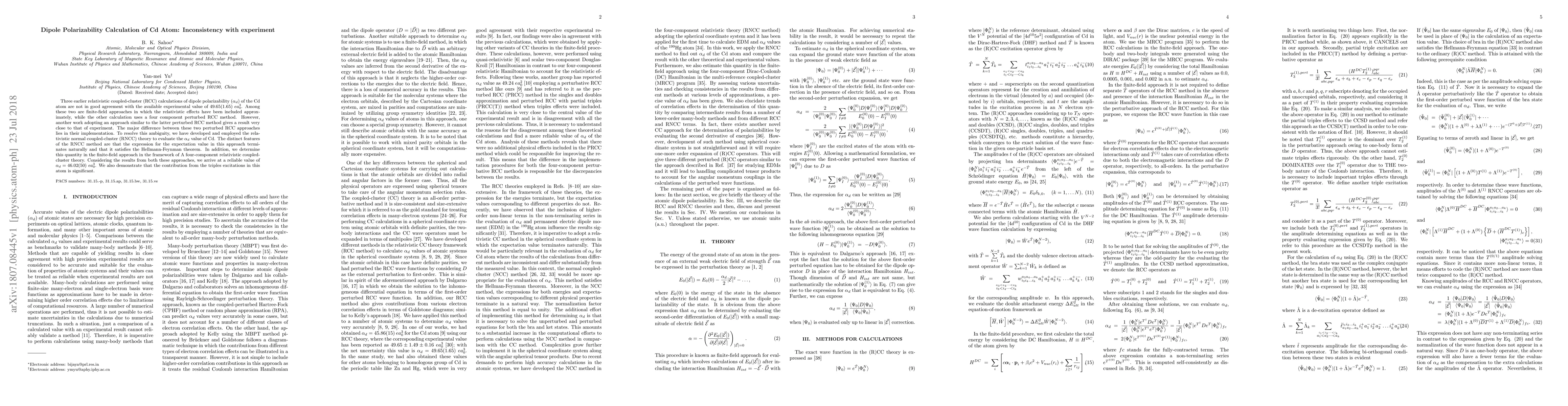 The paper investigates discrepancies in earlier relativistic coupled-cluster calculations of Cd atom's dipole polarizability, finding that while some methods yield results close to experimental values, others do not. Using a new relativistic normal coupled-cluster (RNCC) theory, the authors determine a reliable value of $\alpha_d=46.02(50) \ e a_0^3$, highlighting the importance of triples excitations.