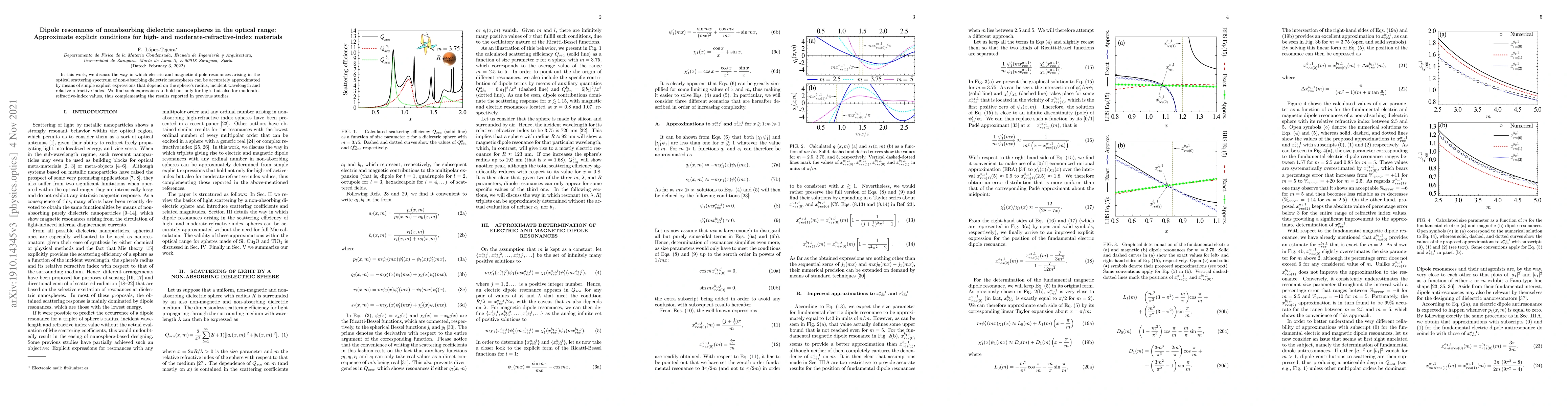 This paper presents simple explicit expressions to approximate electric and magnetic dipole resonances in non-absorbing dielectric nanospheres across optical wavelengths, valid for both high and moderate refractive indices, extending previous findings.